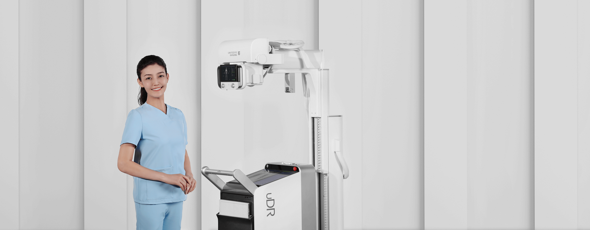 联影新一代uDR 380i Pro 搭载可视化曝光技术,实现远程曝光、隔室指导摆位等功能,兼得精准摄片与低剂量保护;同时,极具突破性的超窄机体设计搭配强劲动力系统,充分发挥“床旁DR”优势,满足病房、ICU等多种应用场景,轻轻一推,转场游刃有余。